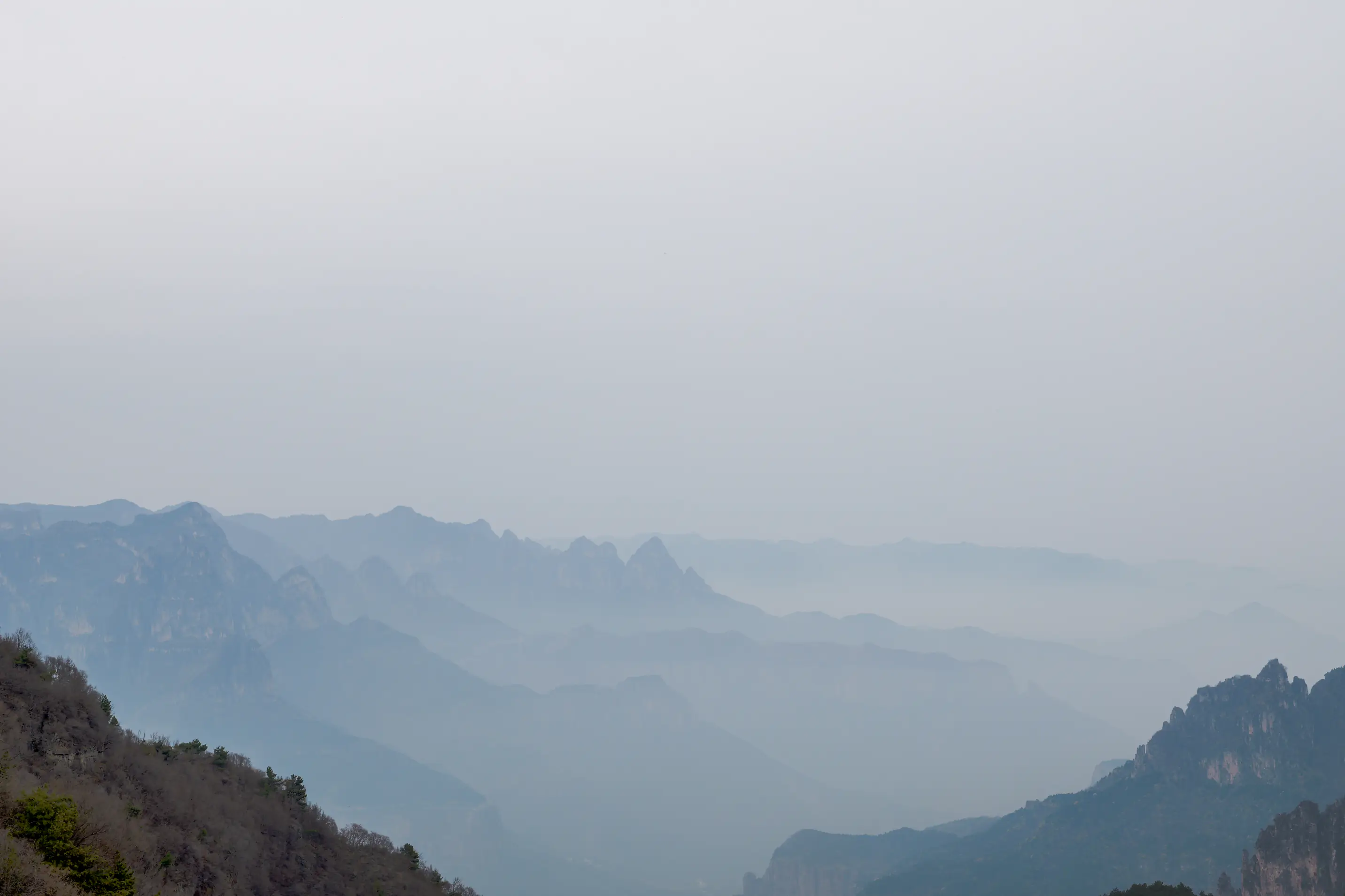 山腰,看到了各种奇石怪山,重岩叠嶂、云雾缭绕。可惜多云,不然景色十分通透:
