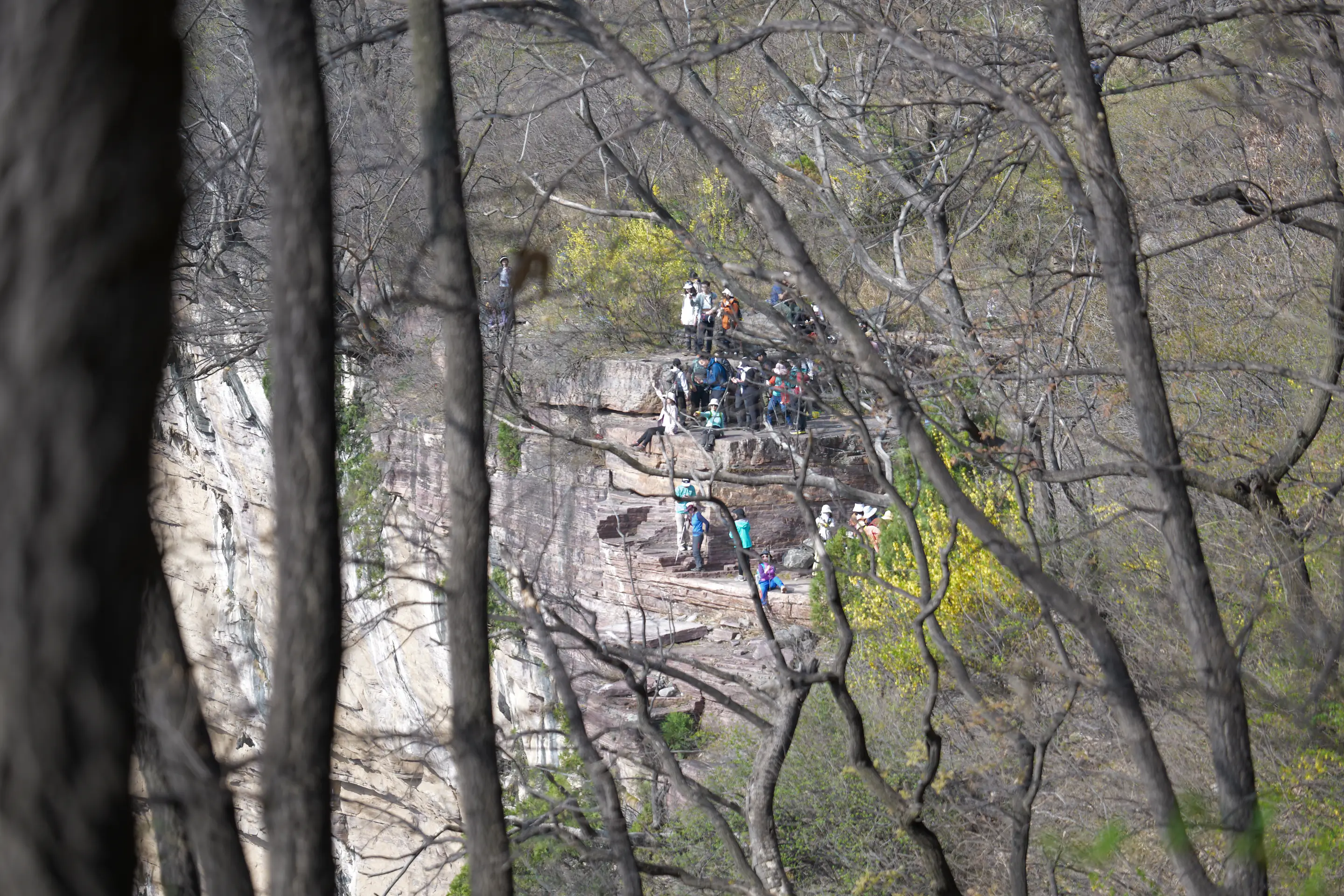有些小伙伴比较生猛,在百米高的悬崖边就这么坐着,风景不敢想象有多好: